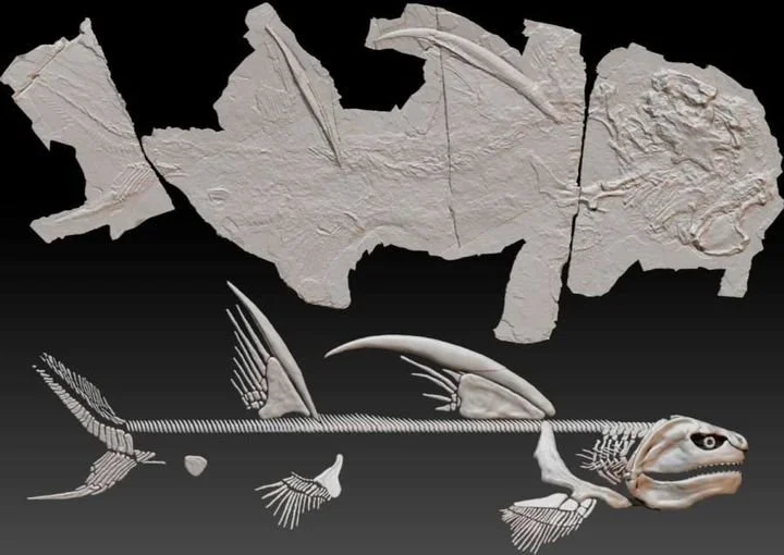 This here is the Godzilla Shark ! To quote the original Facebook post: “One of the most fascinating shark fossils discovered within the last decade is the "Godzilla Shark" of New Mexico. Found in 2013 in the Manzano Mountains, the 300 million-year-old specimen is the most complete shark fossil of the Ctenacanth family. The ancient species was 7 feet long, weighed 200 pounds, and had 12 rows of teeth. The name Godzilla came from the two-and-a-half-foot long spines on the back of the shark!”